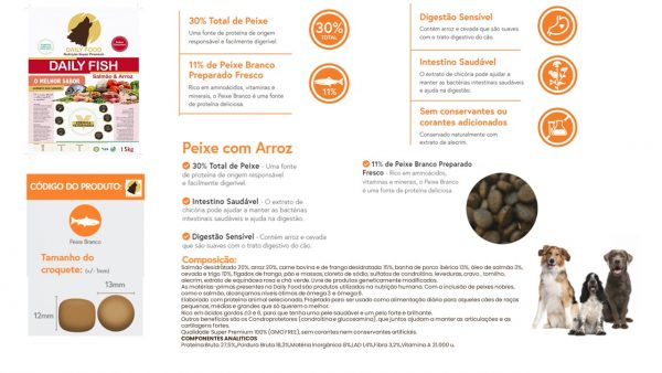 As matérias-primas presentes na Daily Food são produtos utilizados na nutrição humana. Com a inclusão de peixes nobres, como o salmão, alcançamos níveis ótimos de ômega 3 e ômega 6.